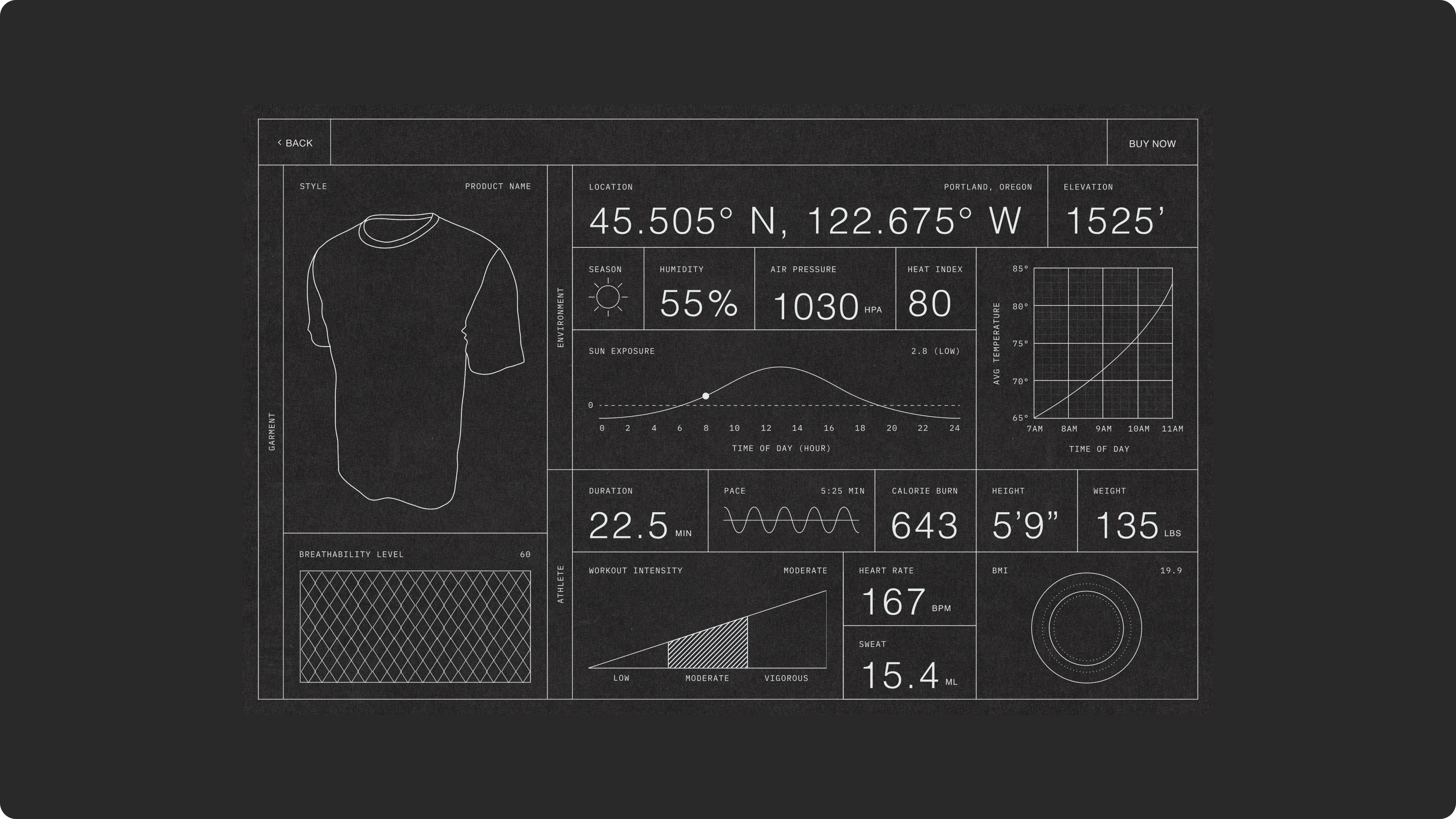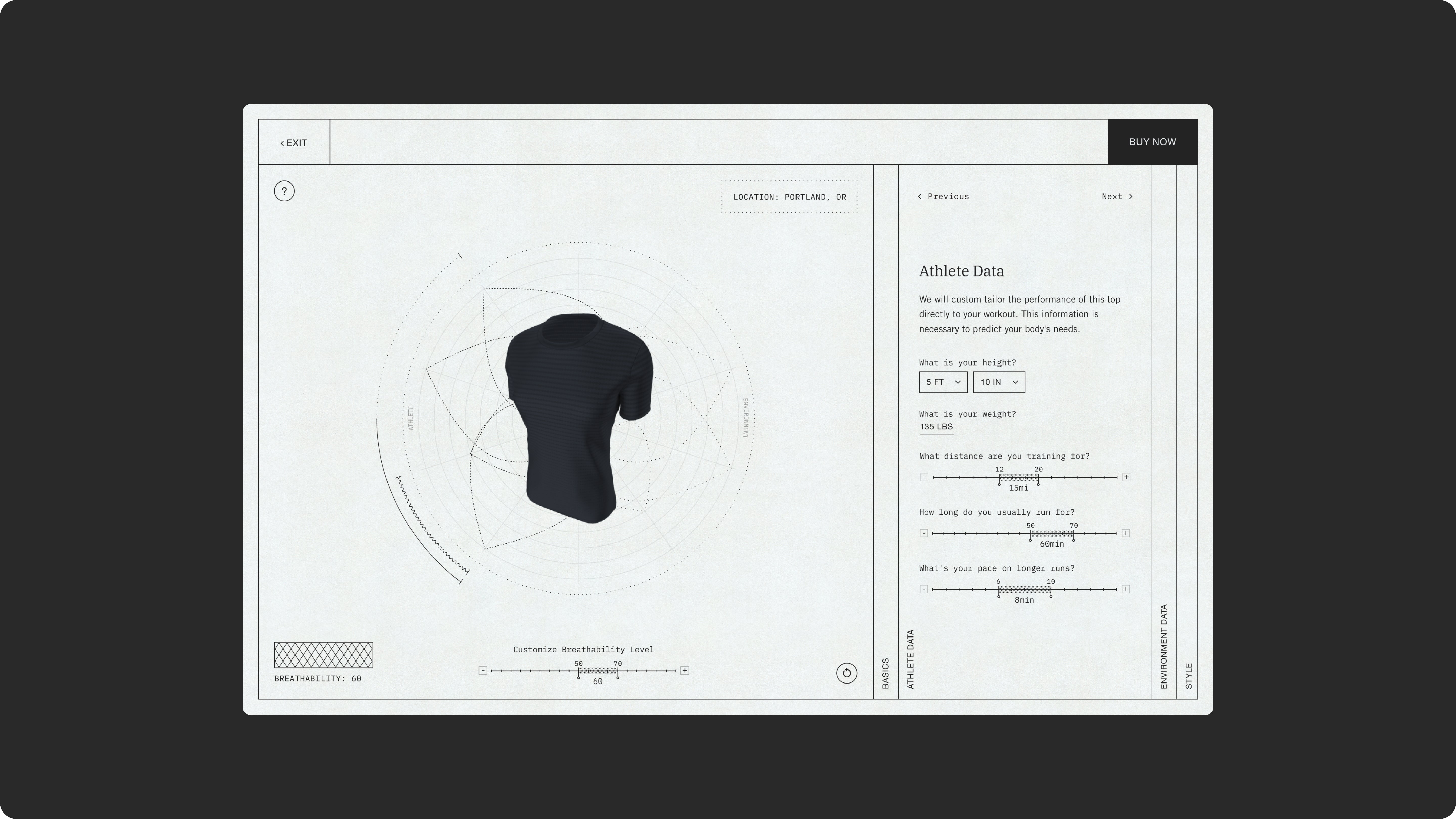 An insightful, interactive, and engaging experience that allows athletes to create the perfect apparel product for their specific needs.